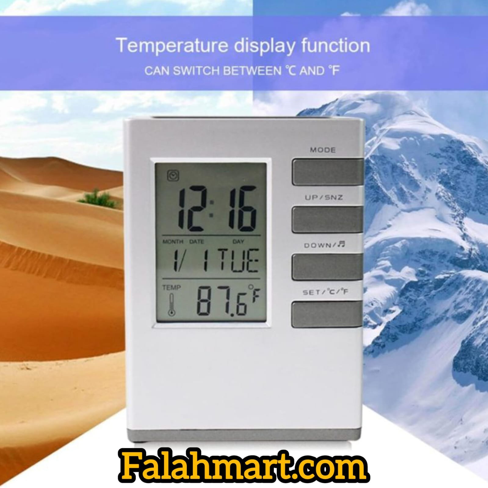 ✅ বড় LCD Display – সময়, তারিখ, দিন ও তাপমাত্রা একসাথে
