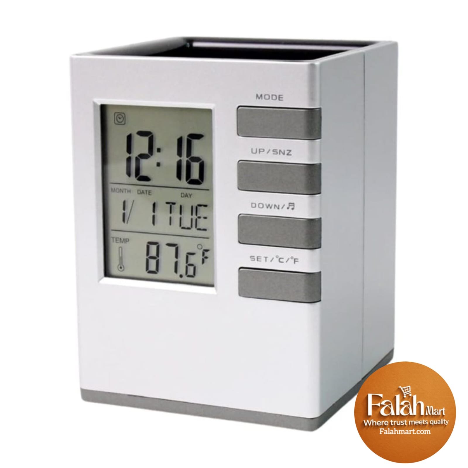 Pen Holder with Digital Watch – Silver আপনার টেবিলের স্মার্ট আপগ্রেড।